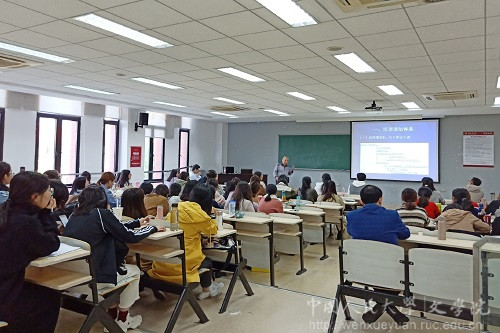 宋柔教授古稀之年却步履稳健,声音洪亮,思路敏捷让同学们尊敬又敬佩,整个讲座生动有趣,讲座临近结束之时,同学们纷纷请求宋柔教授再讲几分钟,再将几分钟。大家也纷纷各抒己见,向教授提问,他耐心仔细的解答并引发同学们向深层次思考探索。如此的教风教貌使人不禁感叹宋柔教授的人格魅力。直到讲座结束,同学们围聚到教授身边和他交流。