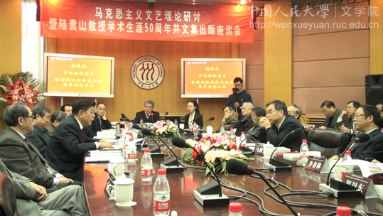 陈传才教授等人分别发言,表达他们对陆贵山教授学术精神的敬意和对马克思主义文艺理论学科建设的积极意见。最后,由陆贵山教授致辞。他衷心感谢与会的各位嘉宾,认为会议不仅是对自己,也是对自己同时代那个学术团队的肯定。强调要坚持人民大学文艺学的优良传统和学科特色,并表示自己要为马克思主义文艺学的研究继续贡献所有力量。