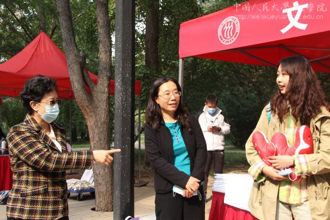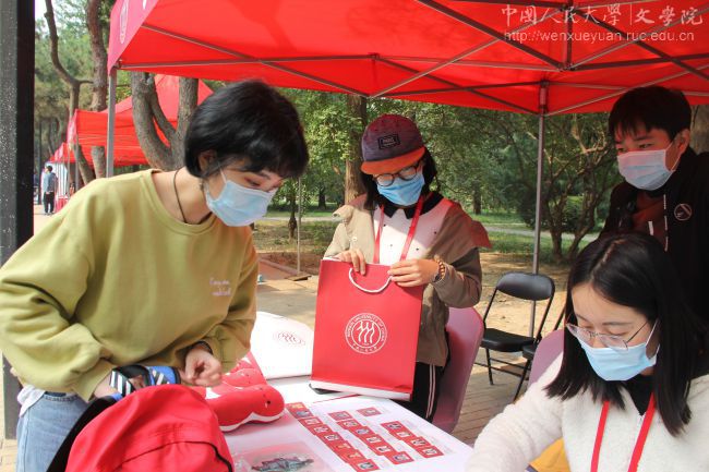 第一位2020级博士研究生的到来。迎新桌上摆放着学生一卡通、院衫、可爱的“人”字形校徽玩偶和防疫物资。在9月迎来2020级硕士研究生之后,“新”的氛围丝毫没有减少:新鲜的面孔,新制作的玩偶,新的立德公寓,以及刚刚入学的2020级硕士研究生也加入了迎接2020级博士的志愿工作中。