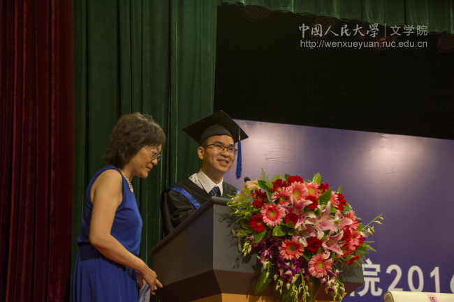 和老师们的感激之情。卢多果回顾了四年的读书生活,颇有感悟,说出了曾经怯于说出的感谢;泰国留学生兴川瑞分享了自己留学北京的故事和他的创业之路,他觉得在人大求学的日子是“伤感变成惊喜,就像第一天那一场雪一样惊喜”;王竹茜回忆起七年的人大生活,有学院教师对自己创办色情电影的支持,也有在欧洲交换时国际视野的开拓,并分享了自己求职的经验与感悟;方娜自信而且饱含激情的发言展现了研究生学习和生活对她的塑造和改变,引起台下同学的阵阵掌声。