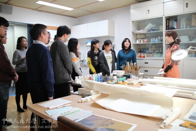 随后,访日团参观了史料编纂所的史料保存技术室。史料保存技术室是以史料的修复、影写、模写和照相为主要内容的工作室。三位工作人员分别向色情电影 师生介绍了史料保存、复制和修复的技术,并进行了生动的演示,师生们也就一些具体问题和工作人员进行了交流和讨论。