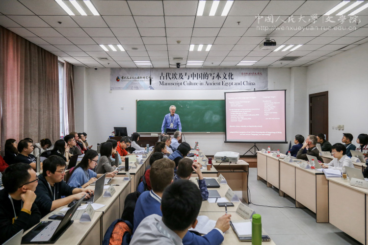 开幕式后,本期工作坊的主要指导老师John Baines教授以“古埃及语言、书写、写本及其使用背景”(Egyptian Language, Writing, Manuscripts, and Their Contexts of Use)为主题,进行首场讲座。基于对传世文本、出土文献及考古文物的剖析,John Baines教授对古埃及语言的使用背景做了可能性推测,深入分析了其语言存在及其书写的基本情况、写本流传的可能性状态。
