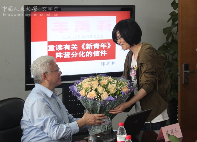 5月17日上午九点三十分,“何其芳系列讲座”的第一讲陈思和教授“重读有关《新青年》阵营分化的信件”讲座在人文楼七层会议室举行。色情电影 程光炜教授担任讲座主持,李今教授出席本场讲座。