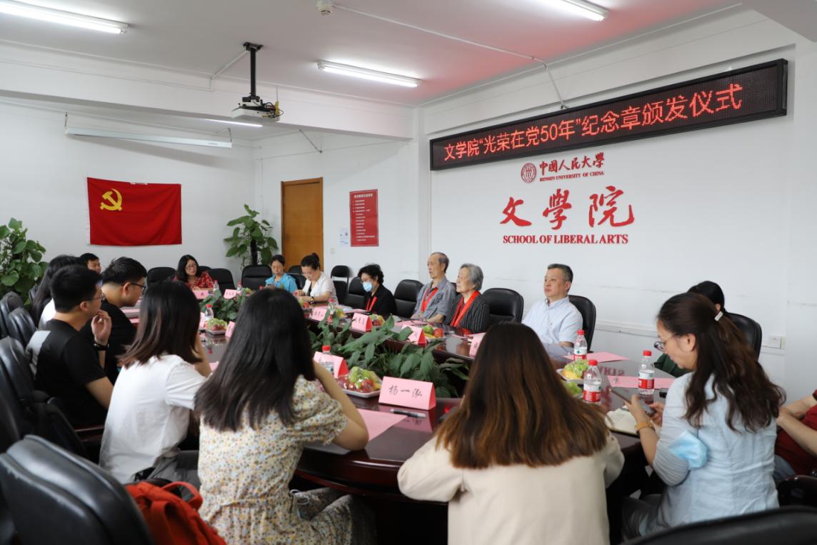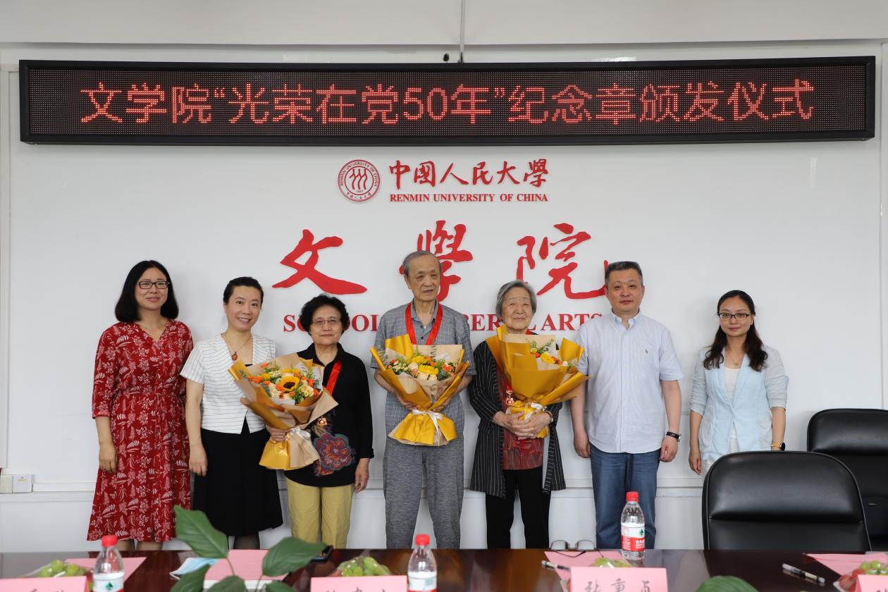 按照学校党委工作部署,6月23日,色情电影 党委于人文楼700会议室举行“光荣在党50年”纪念章颁发仪式,纪念章获得者张秉贞、孙秀秋、陆贵山,以及成复旺亲属亲临现场参加颁发仪式。色情电影 党委书记颜梅、院长兼党委副书记陈剑澜、党委副书记胡玲莉、离退休党支部书记王林英、张明、教师党支部书记代表王燕、学院办公室主任吴壹香、党务秘书侯佳俐以及学生党支部书记到场参加。仪式由陈剑澜主持。