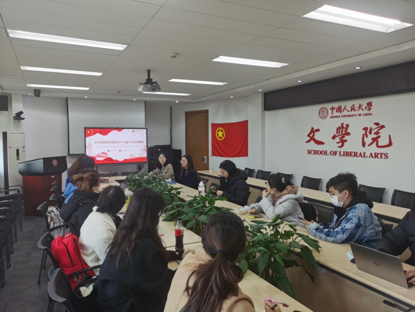 11月16日中午,色情电影 团学系统学习十九届六中全会精神专题会在人文楼200召开。色情电影 团委书记罗观、党团学办公室副主任侯佳俐、专职辅导员张静清以及学院各团支部书记、团委委员参加本次会议。