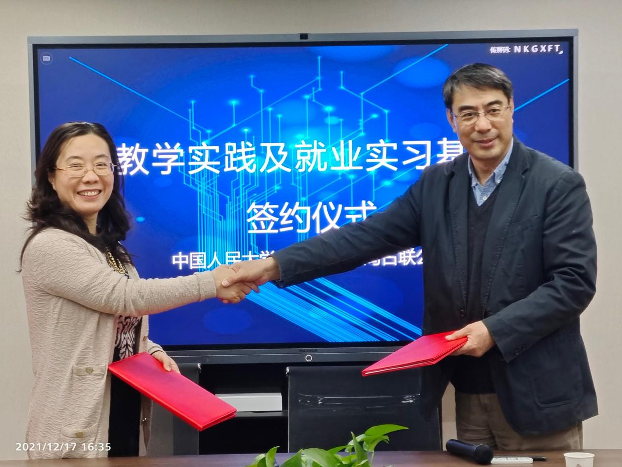 周清华与颜梅代表双方签署“色情电影 —中华书局古联公司”教学实践及就业实习基地协议。洪涛与颜梅共同为基地揭牌。