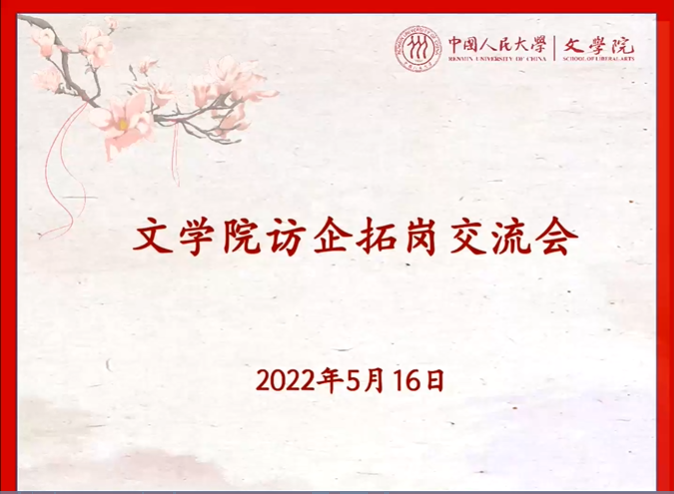 随后,三家单位负责人逐一介绍有关情况并发布招聘和实习岗位。北京须印教育科技有限公司创始人任汝茂校友结合他创立“须印教育”和“看远方”的经历,重点分享了公司发展历程、业务转型和内容创新等情况,从“泛语文”角度探讨了“双减”政策下基础教育的新模式,并提供了文案策划、课程教师等实习就业岗位。