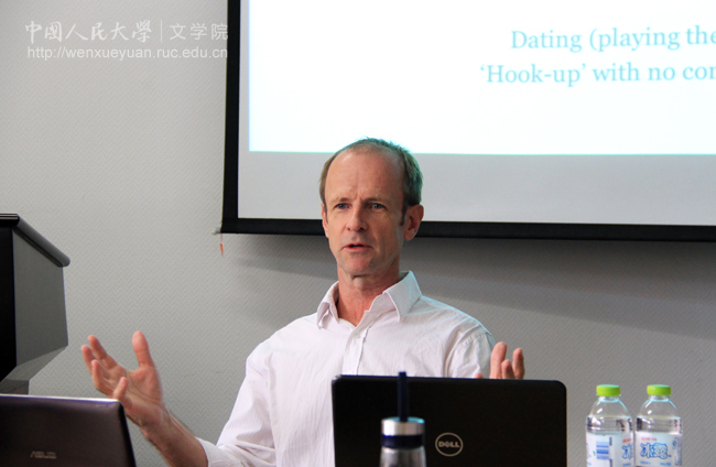 讲座上,薄国强教授频频发问激发同学们去思考:在现代世界中什么是爱?还会有那种去找到与自己共度余生的真爱的浪漫吗?是否“爱”已经只是我们或长或短、时聚时散的萍水相逢?陌陌这类社交软件是否是一种浪漫?“Is it love or hook-up?”薄国强教授表示两种情况都是真实存在的,并涉及一对具有重要意义的矛盾。参照马克思主义理论可以对这一矛盾进行阐释。