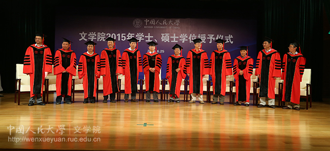 党委书记兼副院长朱冠明老师主持,他首先代表学院向2015届毕业生表示了由衷的祝贺,并介绍了到场为毕业生授予学位的陈传才等12位教授。