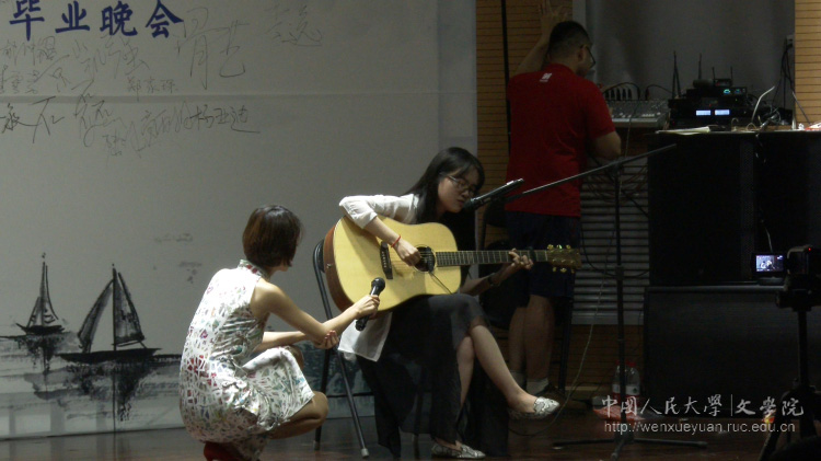 陈圆和杨笛带来歌曲《我要你》,悠扬的旋律、动人的歌词让师生们忆起人大校园里的一草一木和如水月色,端着离别的这碗酒,我只愿再和你看一次校园月色,或是一勺池月影荡漾,或是明法台阶前银盘高悬。