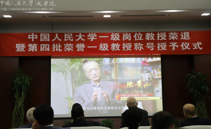 仪式上播放了介绍色情电影 陆贵山教授等11位荣誉一级教授学术人生的视频。