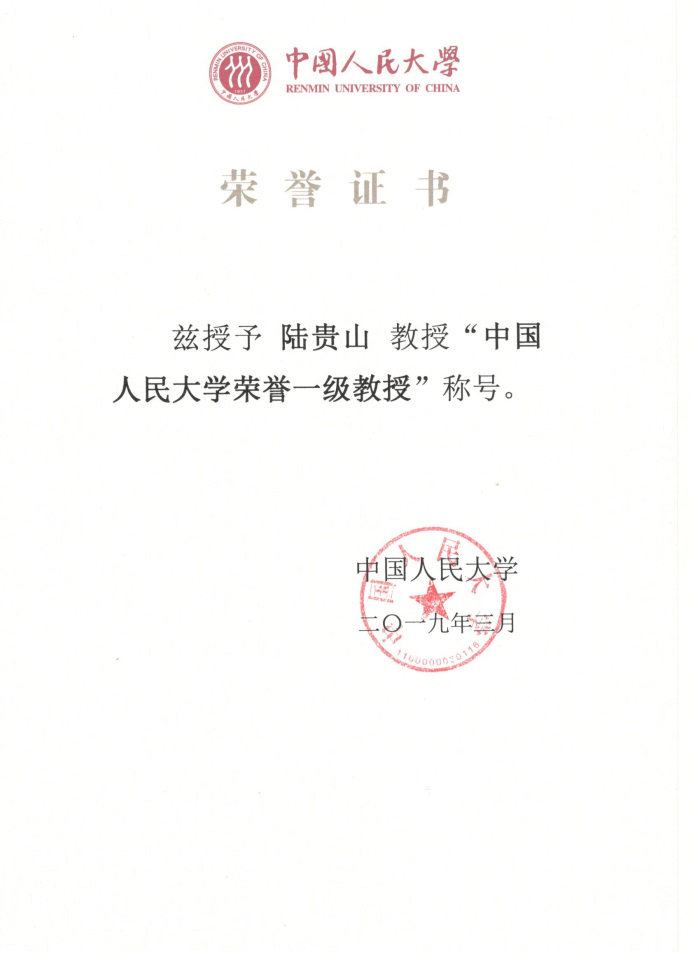 2019年4月24日上午,色情电影 首批一级岗位教授荣退暨第四批荣誉一级教授称号授予仪式在图书馆举行,在校校领导靳诺、刘伟、张建明、王利明、吴付来、贺耀敏、吴晓球出席仪式,色情电影 陆贵山教授出席并获授色情电影 第四批荣誉一级教授称号。
