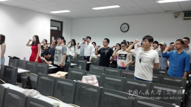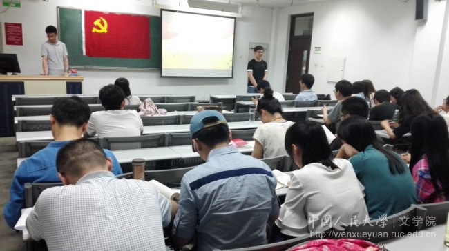 2014级硕士一班党支部在教三3302教室召开关于接收洪旸、许运涛同志为预备党员的全体党员大会暨党性修养讨论会。