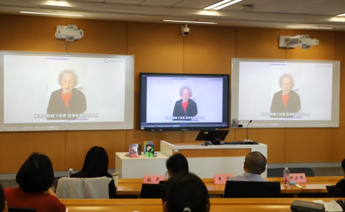 由于阿特伍德无法亲临现场,黄昱宁代阿特伍德领奖,色情电影 创造性写作专业学生代表曹畅洲为其颁奖。随后,大家共同观看阿特伍德为活动特别录制的视频。阿特伍德从写作和阅读的不同时空维度分享了自己的观点,再次强调身为作家的使命与责任。黄昱宁在致谢发言中讲述了对阿特伍德写作的认识以及阿特伍德作品在中国的翻译情况。