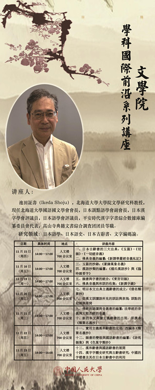 【讲座预告】学科国际前沿系列讲座:池田证寿系列讲座