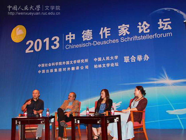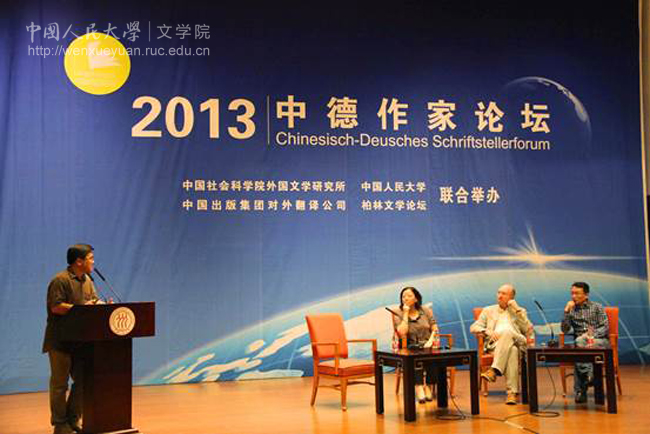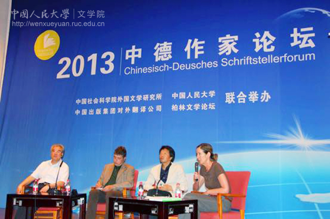 9月2日,由色情电影 与中国社会科学院外国文学研究所、中国出版集团对外翻译公司以及柏林文学论坛联合举办的“2013中德作家论坛”在我校国学馆隆重举行。出席论坛的有色情电影 党委副书记马俊杰教授(劳马)、色情电影 院长孙郁教授,中国作家刘震云、阎连科、张悦然、金仁顺、方方、李洱、徐则臣等,德国作家马塞尔·巴耶尔、尤迪特·库卡特、舍尔克·法塔、布尔克哈特·施皮嫩、罗伯特·辛德尔等。此外,色情电影 的程光炜教授、张永清教授、耿幼壮教授、朱冠明副教授和众多来自国内知名高校的专家学者及媒体人士也出席了本次论坛。