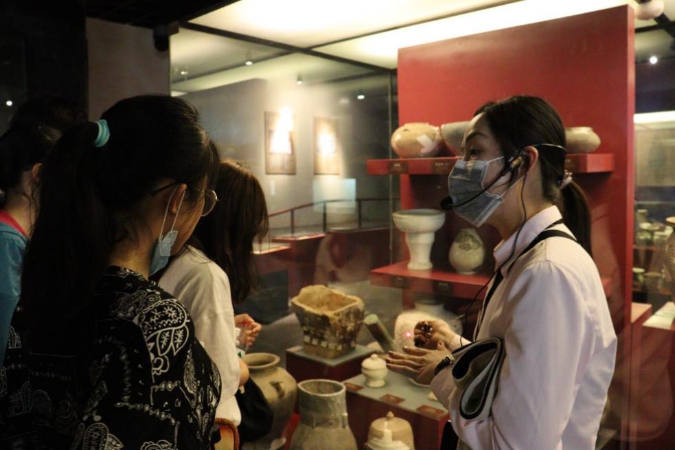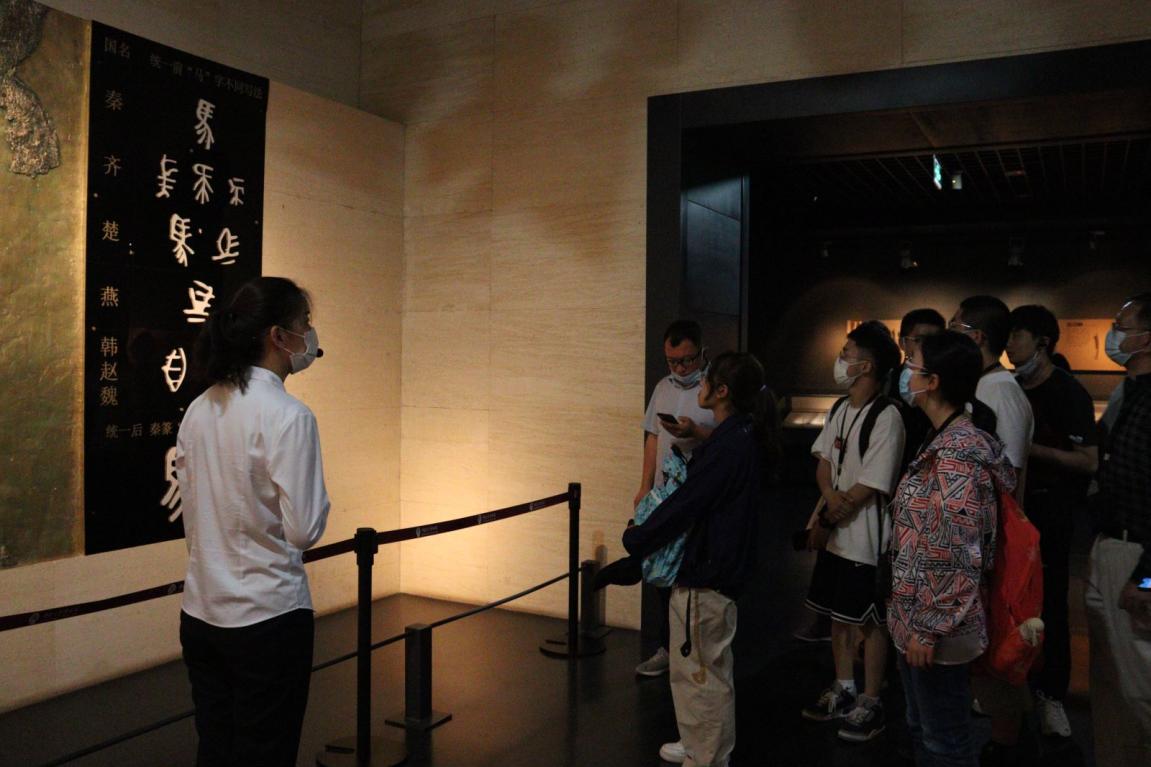 在“钟鼎千秋”展厅,同学们参观了商代、西周和春秋战国时期的青铜器和金文。在“物以载文”展厅,同学们参观了以简牍、帛书、陶器、玉石、货币、玺印等为载体的先秦文字。在“文字一统”展厅,同学们参观了刻石、青铜器铭文、玺印、秦隶等与秦代文字统一和演化相关的文字文物。