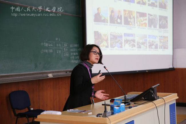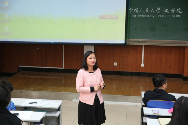 张靖老师为大家介绍了世界汉学大会的概况,包括汉学在历史上的产生与发展、过往四届汉学大会的亮点以及本届大会的主题与与会学者。张老师着重强调了“志愿者是我们汉学大会永远的亮点”,表示对在座的志愿者们非常有信心,并期待能与大家在这一过程中紧密合作,结下友谊。