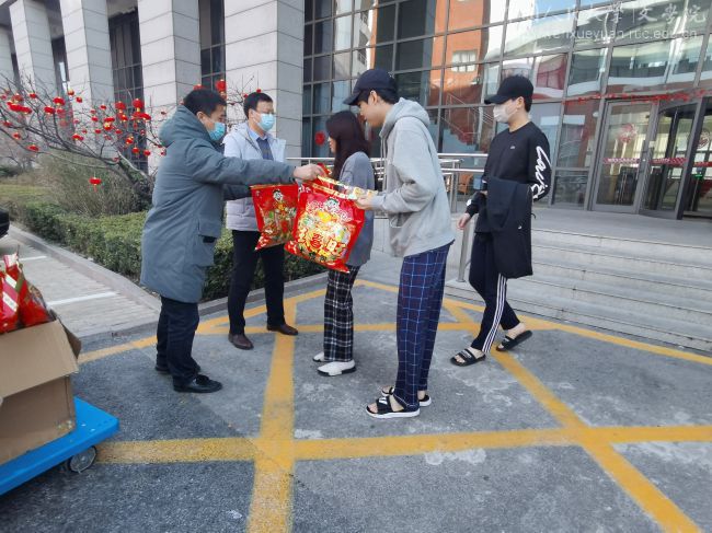 为严格落实疫情防控要求,减少人员聚集,本次看望活动在四个户外地点依次进行,分别是留校学生较为集中的立德公寓楼前、高丽会馆楼前、品园六楼楼前和知行一楼楼前。学院领导老师逐一走访宿舍区,与同学们亲切交流,了解大家寒假期间的学习生活安排,并为每位同学送上节日礼包和防疫物资。活动现场阳光和煦,暖意融融,欢声笑语不断,每位远在他乡的学子都感受到了家的温暖。