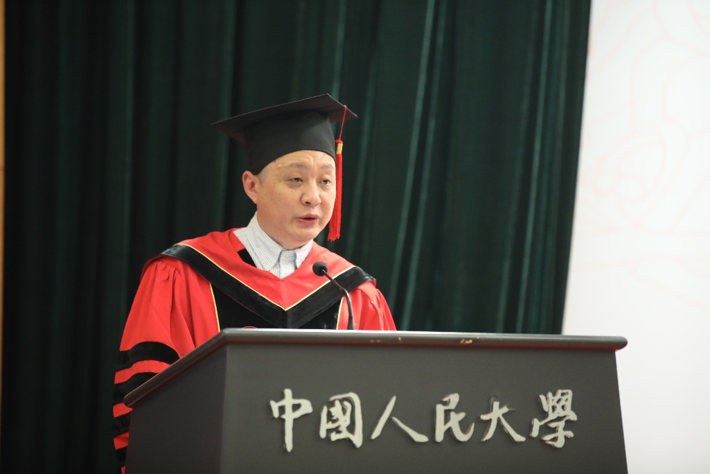 博士生代表、2017级语言学及应用语言学陈天琦以“专属于人大人的精神力量”为主题内容与各位毕业生共勉。这份力量源于生养于此的拳拳神情,是对实事求是的执着坚守、是求知求真路上的踏实探寻;更是无惧于沧海一粟的有限、渺小,亦有海纳百川的无穷魄力。